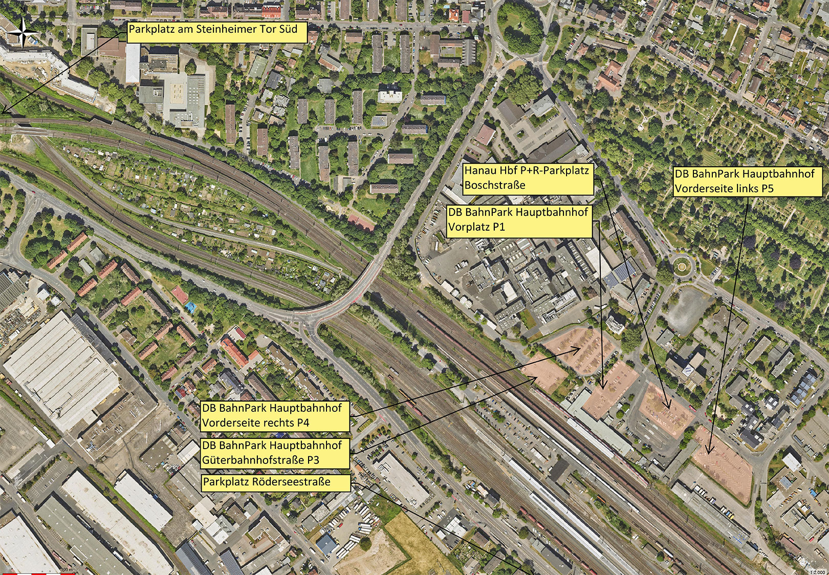 • DB BahnPark Hauptbahnhof Güterbahnhofstraße P3 DB BahnPark Hauptbahnhof Vorderseite rechts P4 DB BahnPark Hauptbahnhof Vorderseite links P5 Parkplatz Röderseestraße Parkplatz am Steinheimer Tor Süd