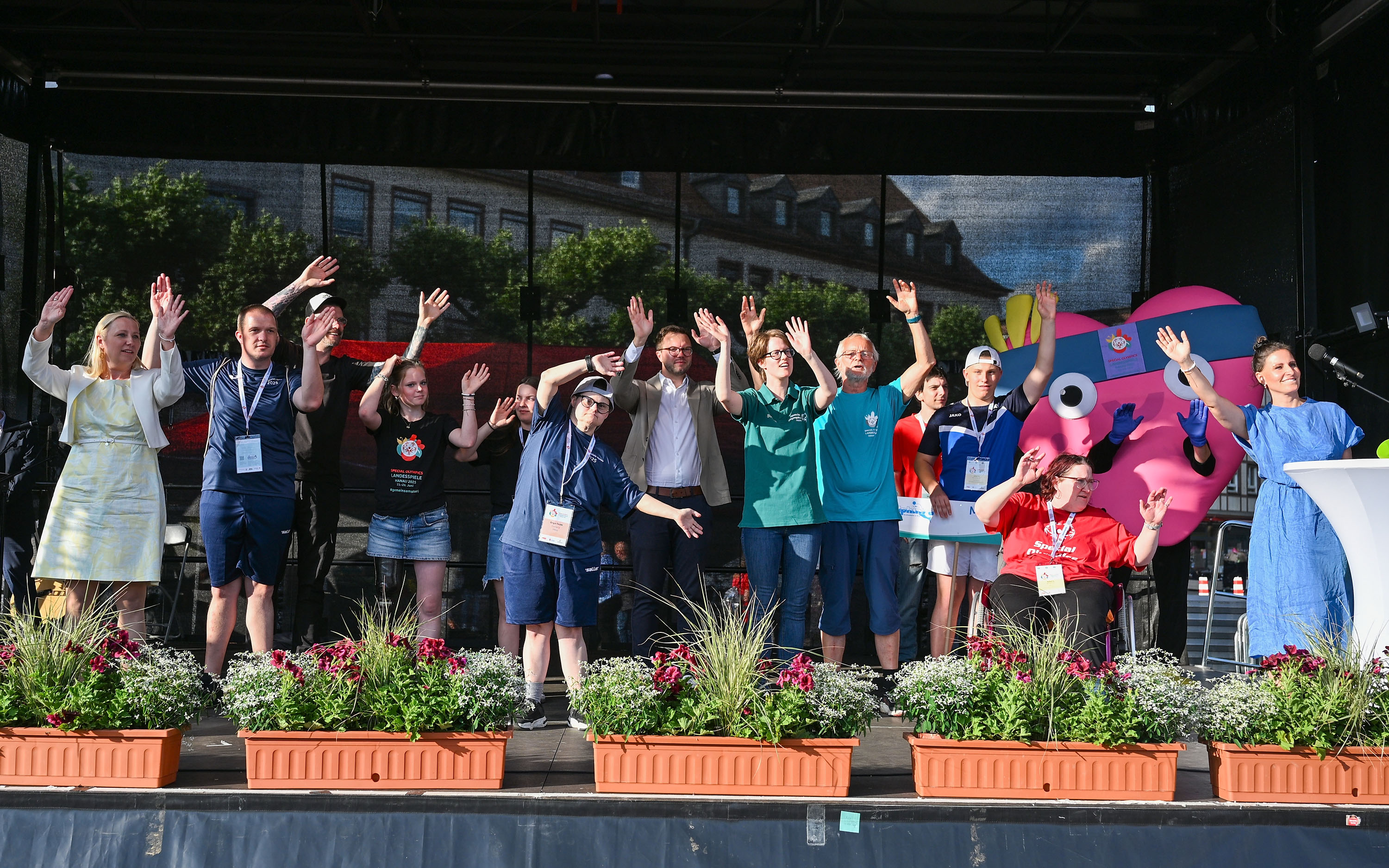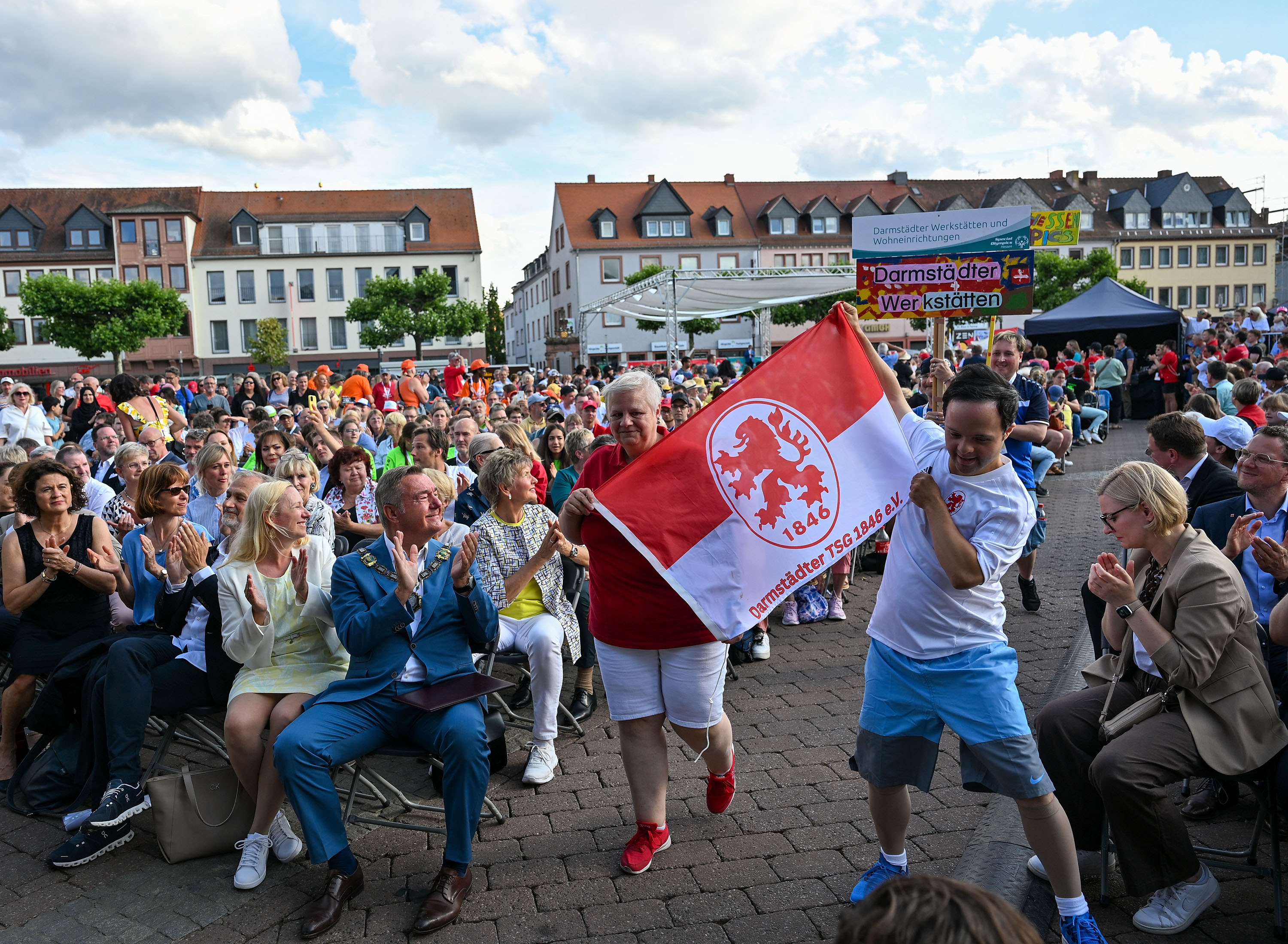 „Ein Hoch auf uns“: Special Olympics Landesspiele in Hanau waren ein großes Sport- und Inklusionsfest Abschluss-Zeremonie auf dem Marktplatz / Hanau steht als Ausrichterstadt der „Special Olympics Landesspiele 2029“ bereit