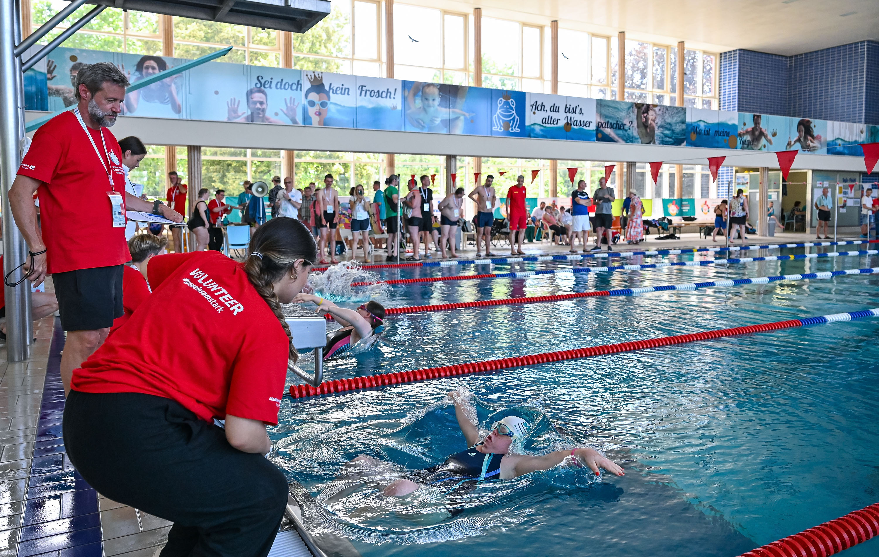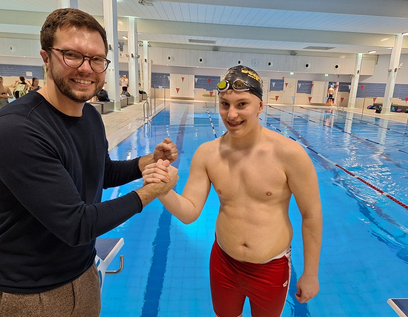 Special2025 Bürgermeister Dr. Maximilian Bieri besuchte Schwimmer Maximilian Ott beim Training im Lindenbaubad.