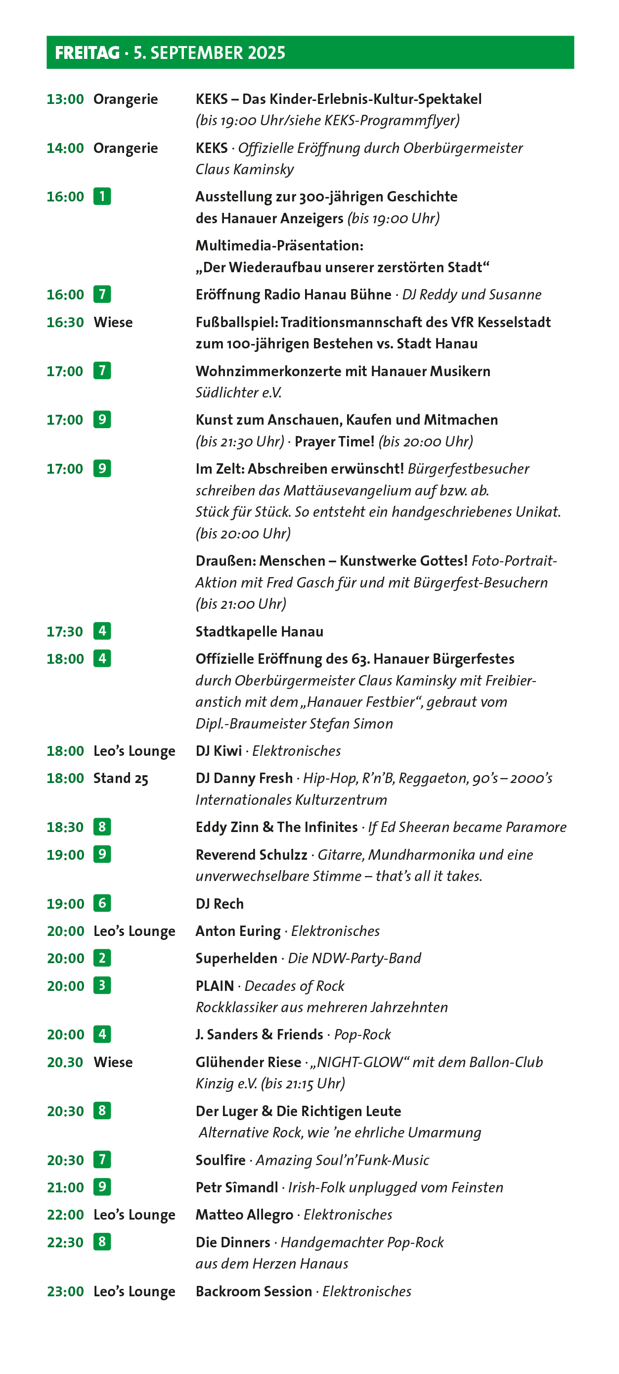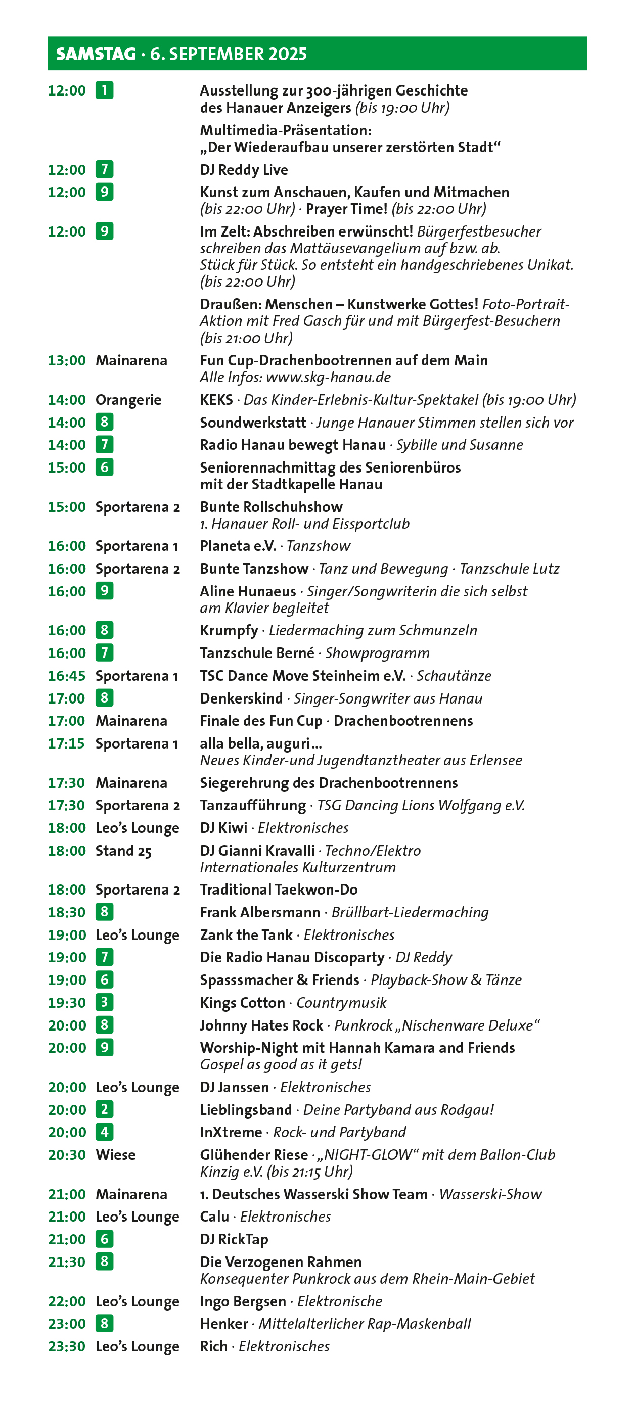 Bürgerfest: 05.09-07.09.202563. Hanauer Bürgerfest: Drei Tage Live-Musik, Sportevents, Showeinlagen und Kinderspaß