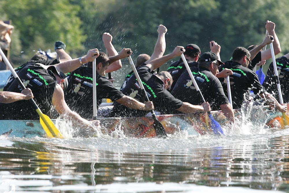 Die rhythmischen Trommelschläge, lautstarken Kommandos und begeisterten Anfeuerungsrufe vom Ufer sind längst zu hören, noch bevor das erste Drachenboot zu sehen ist. Dabei gehört der fröhliche Wettkampf auf dem Main seit einigen Jahren ganz fest ins Programm von Hanaus traditionsreicher Veranstaltung auf den Mainwiesen: seit 20 Jahren beweisen sportliche Teams ihre Schlagfertigkeit der besonderen Art beim Hanauer Bürgerfest auf der exakt 223 Meter langen Strecke.