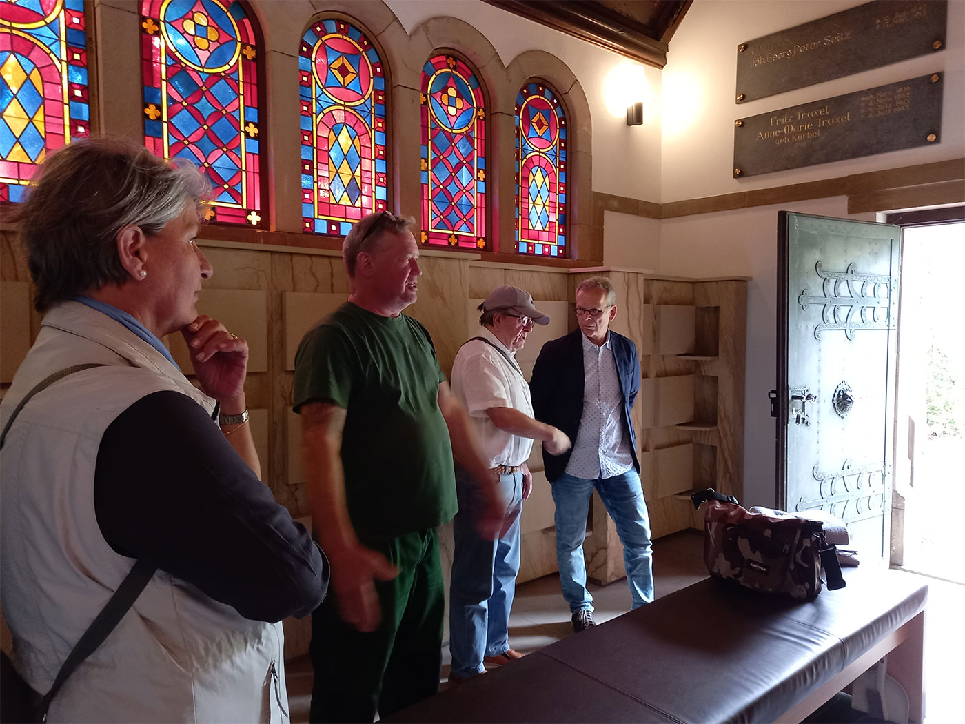 So nutzen jetzt Mitglieder des Seniorenbeirates der Stadt Hanau die Möglichkeit zu einer Begehung des Hanauer Hauptfriedhofes. Herr Thomas Asbach, Einsatzleiter auf dem Hauptfriedhof, zeigte kurzweilig und fachkundig die Vielfalt der verschiedenen Gräberarten auf: Baumgräber, Kindergräber, Muslimische-, Reihen-, Erdrasen- und Urnengräber sowie Urnenwände bzw. Kolumbarien.