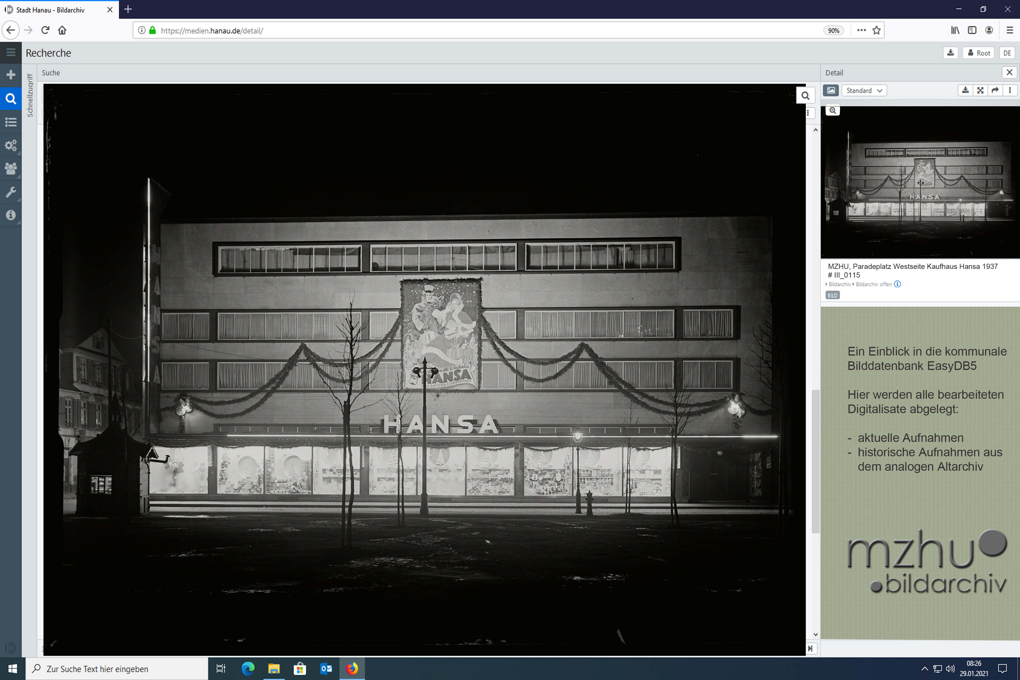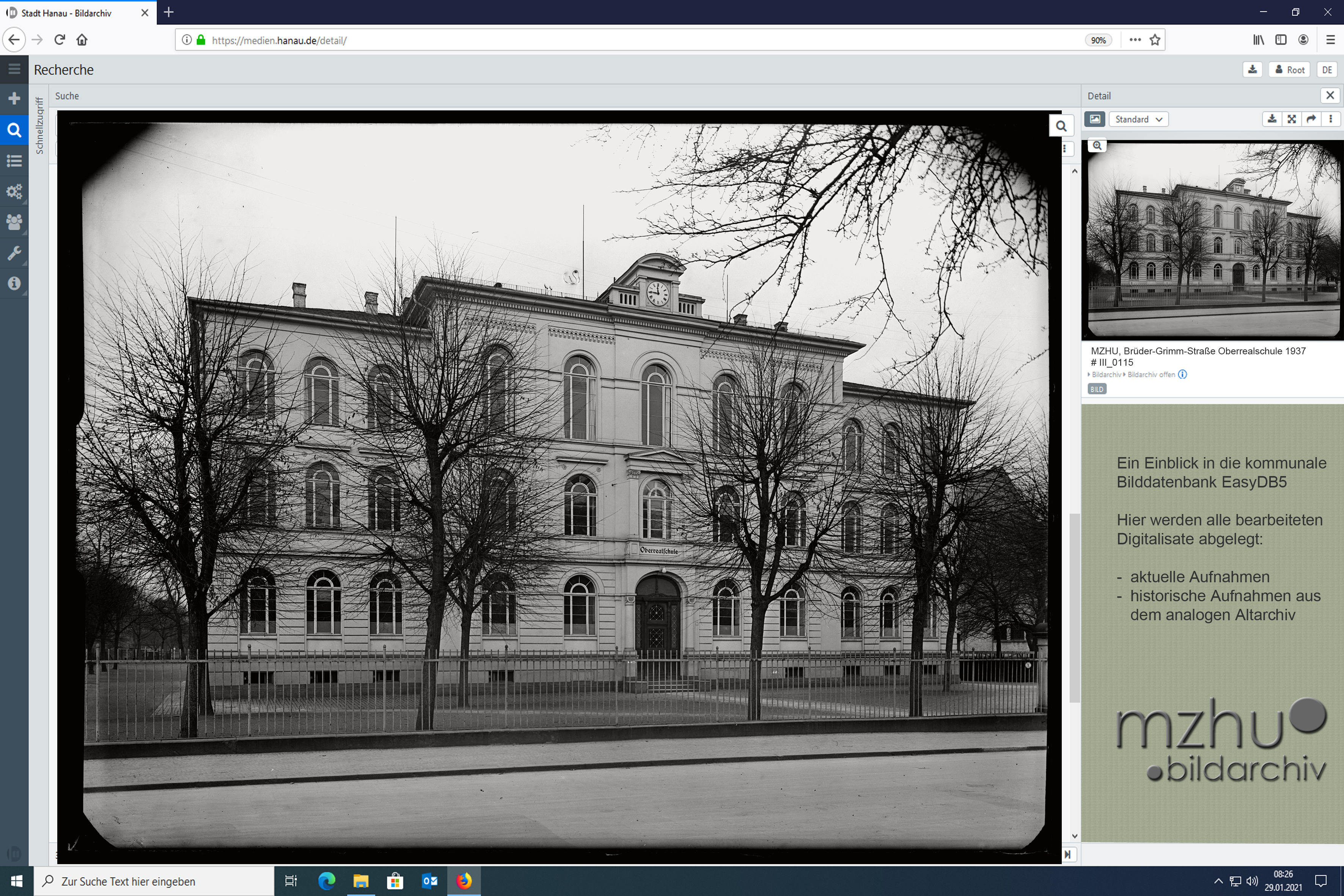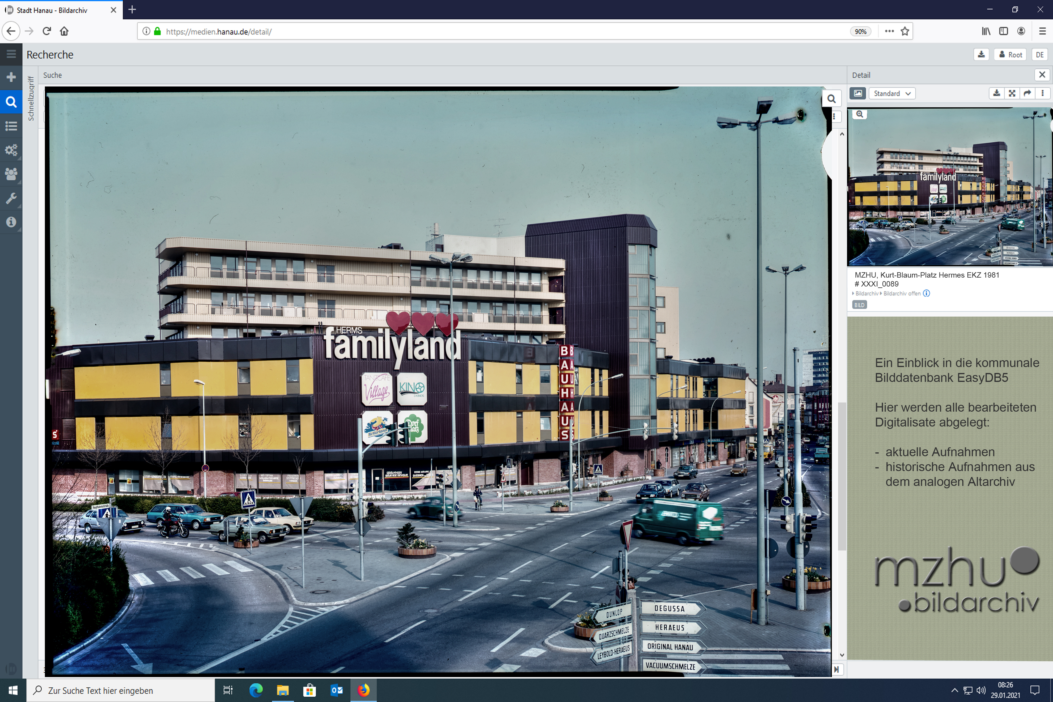 Das Medienzentrum Hanau heißt Sie im Forum Hanau im 2. OG des Kulturforums in enger Nachbarschaft mit der Stadtbibliothek herzlich Willkommen. Über das Medienzentrum stellt die Stadt Hanau ihren Schulen qualitätsgeprüfte Medien und Gerätetechnik für den Einsatz im Unterricht zur Verfügung. Das Kommunale Bildarchiv ist Teil des Medienzentrums und beherbergt mehr als 350.000 Bilder und sogar Glasplattenmotive, die ältesten sind aus 1860 bis 1880. Damit ist es eines der größten hessischen kommunalen Bildarchive.