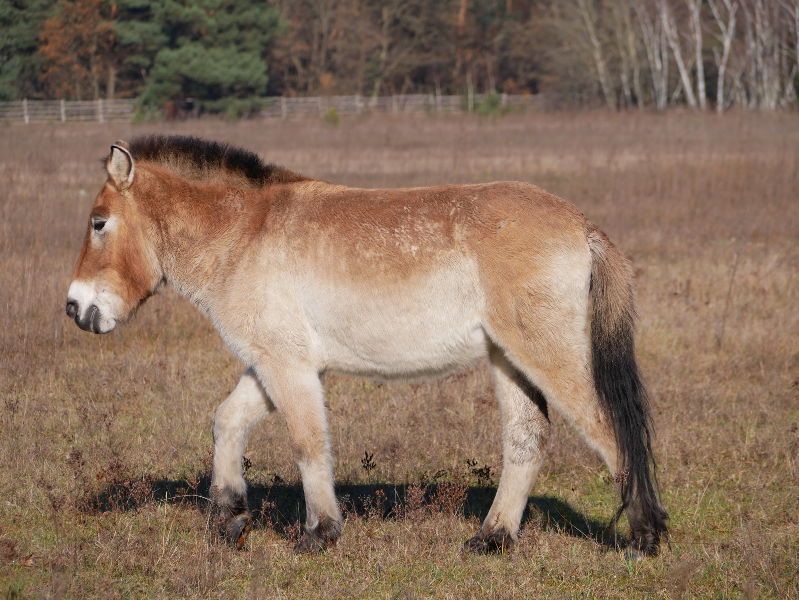 - Äußere Kennzeichen: Kippmähne, Beinstreifen, helle Fellfarbe